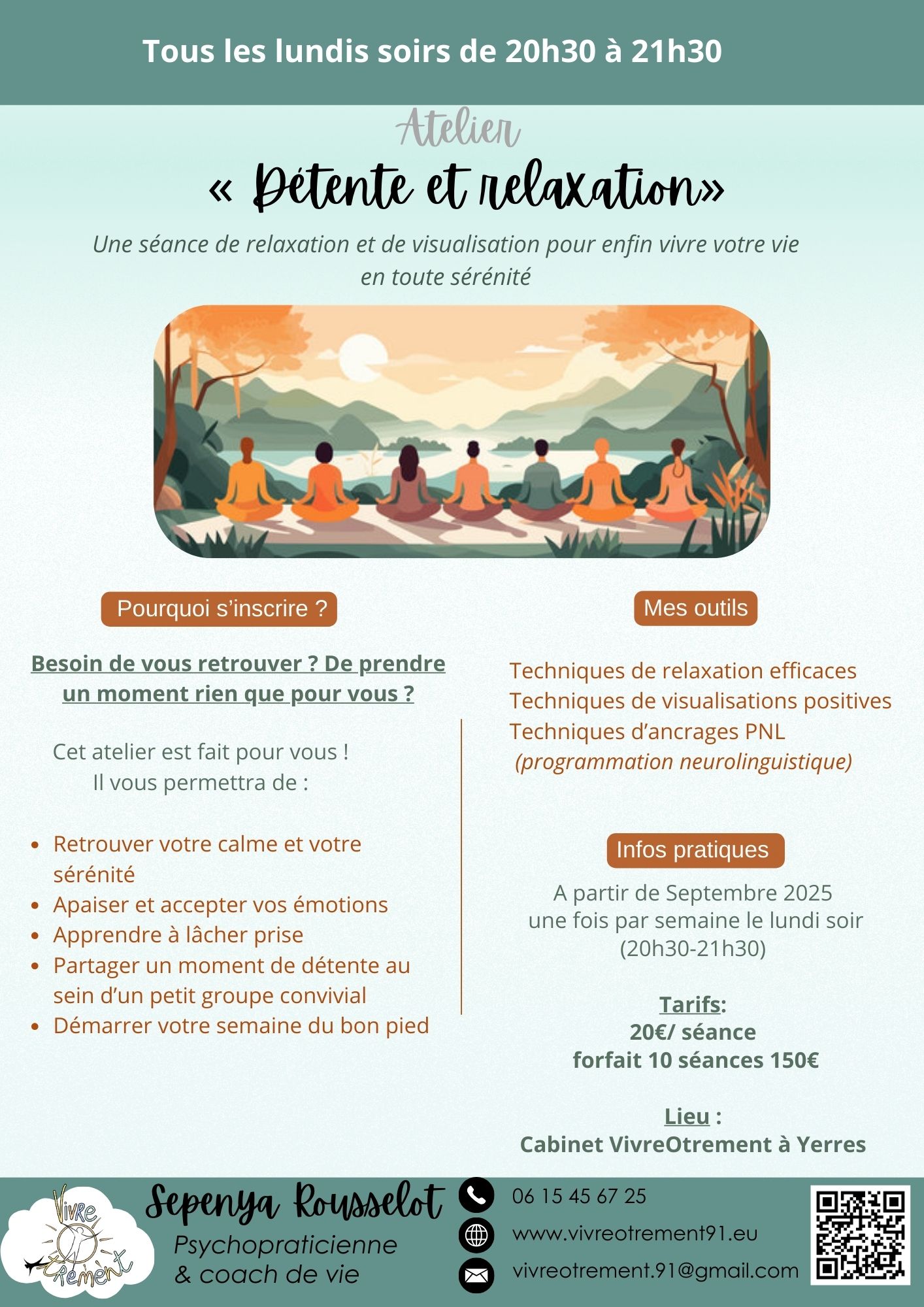 Séance de relaxation et/ou de visualisation créatrice pour vous détendre, lâcher-prise et vivre en toute sérénité.
